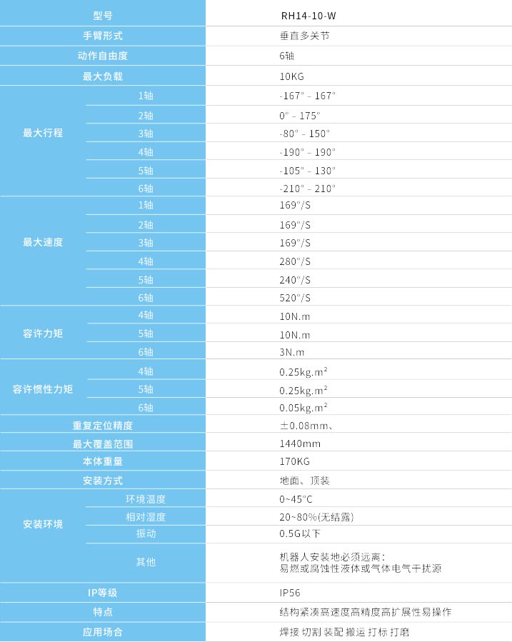 · 工作空間大、運行速度快、重復定位精度高,適用于焊接、噴涂、上下料、搬運、分揀、裝配等應用,適用范圍廣。